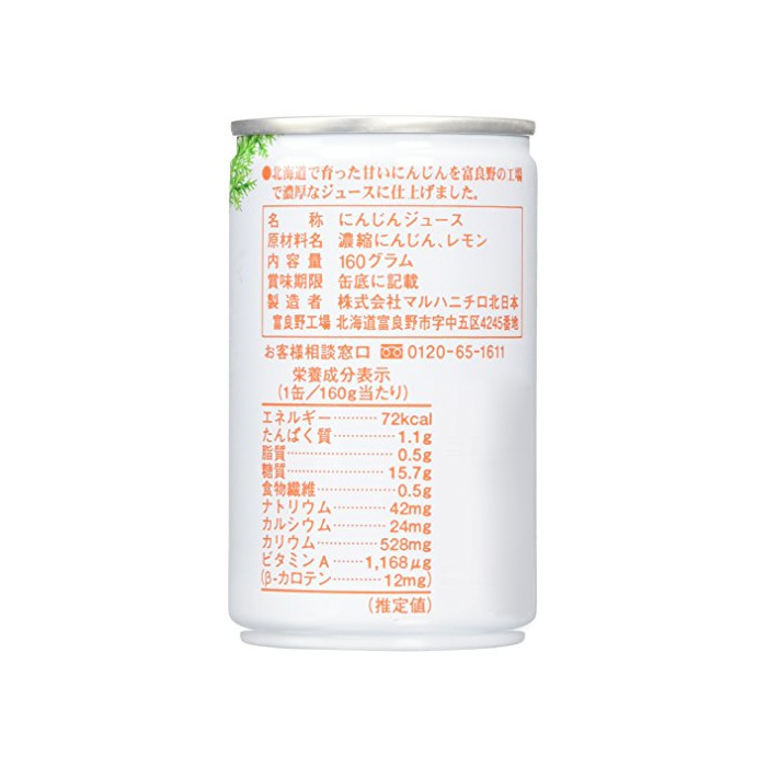 원본상품명: マルハニチロきたにほん ふらの 濃厚 富良野にんじん物語 160g×30本
