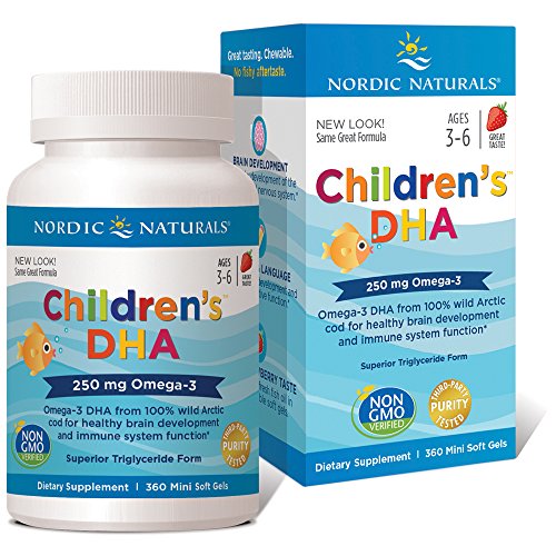 The #1-selling children's omega-3 in the U.S. is made exclusively from 100% wild Arctic cod (Skrei). Delicious strawberry-flavored Children?s DHA is rich in the omega-3 DHA, which is essential for brain function, and can easily be swallowed or chewed by children three years and older. Like all Nordic Naturals fish oils, Children's DHA is lab tested and surpasses strict international standards for purity and freshness.Feature