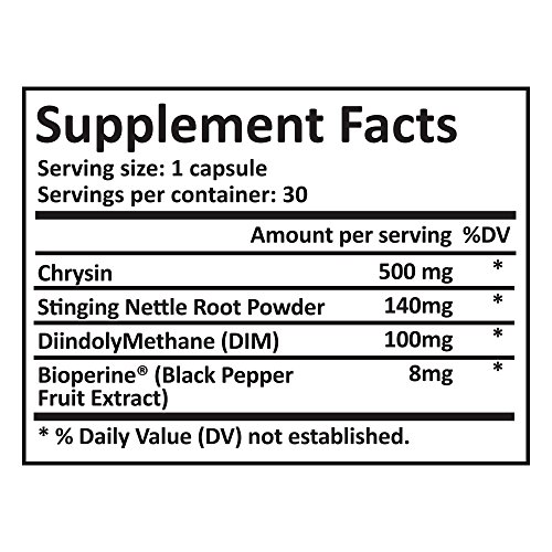 -. Binding : Health and Beauty -. Brand : Pure Science Supplements -. EAN : 0696859002656 -. Feature : TRIPLE-ACTION FORMULA - AROMATASE INHIBITOR: Triple-action formula containing Chrysin, Diindolylmethane (DIM) and Stinging Nettle Root Extract to eliminate the three enemies of testosterone. Aromatase inhibitor for men serves as an estrogen blocker. DIM supplement is a powerful modulator of the immune response system. Stinging Nettle Root inhibits enlargement of the prostate gland. / CONTAINS BIOPERINE TO MAXIMIZE ABSORPTION: The only Chrysin supplement product in Amazon with BioPerine. Absorption of Chrysin and Stinging Nettle Root Extract is vital in order to enjoy the fullest benefits of this supplement. This is where Pure Science AE-3 comes ahead of the competition. AE-3 is the only Chrysin supplement available in the market that contains BioPerine, which increases absorption of several nutrients including coenzyme Q10, selenium, curcumin, vitamin B6 and Vitamin C. / INCREASES FREE TESTOSTERONE: AE-3 increases free testosterone by blocking estrogen and inhibiting aromatase, which is vital for optimum sexual health. Reduces stress and anxiety without common side effects associated with the use of medicinal drugs. / GOOD MANUFACTURING PRACTICES CERTIFIED: Produced by GMP certified facilities with the highest manufacturing and sourcing standards of Pure Science. With the motto "Rooted in Science, Backed by Research," Pure Science Supplements focuses on producing the safest products for our customers to achieve greater vitality in mind and body by using only the quality-based raw materials obtained through rigorous research. / MONEY-BACK GUARANTEE: As we are confident of the efficacy of AE-3, all purchases are backed by a 100% money-back guarantee should you be unsatisfied. Our products are potent for 2 years from manufacture date. -. IsAdultProduct : 0 -. Label : Pure Science Supplements Pte Ltd -. Manufacturer : Pure Science Supplements Pte Ltd -. MPN : Chrysin -. PackageQuantity : 1 -. PartNumber : Chrysin -. ProductGroup : Health and Beauty -. ProductTypeName : HEALTH_PERSONAL_CARE -. Publisher : Pure Science Supplements Pte Ltd -. Studio : Pure Science Supplements Pte Ltd -. Title : Pure Science AE-3 Chrysin with DIM & Stinging Nettle Root Extract - Natural Aromatase Inhibitor & Estrogen Blocker for Men - 30 Capsules -. UPC : 811182436231