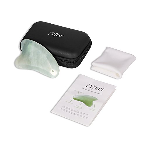 Gua Sha Scraping Jade Massage Tools,JYfeel Guasha Board Traditional Scraper Tool for SPA Home Use Hand Made Extra Thick Gua Sha Stone for Face Body with Wipe Cloth Carry Case 100% Natural Jade Material,gives you a healthy SPA,To improve stimulating blood flow, relax muscle soreness and release positive energy field. Ultra Smooth Surface,feeling comfortable and smoothly when holding and using,won't hurt your skins. Perfectly contoured to be used on all body parts! Easy to Clean Carry,durable and long lasting material.? So cool handmade,perfect gift idea for your family,friends,colleagues,or schoolmates