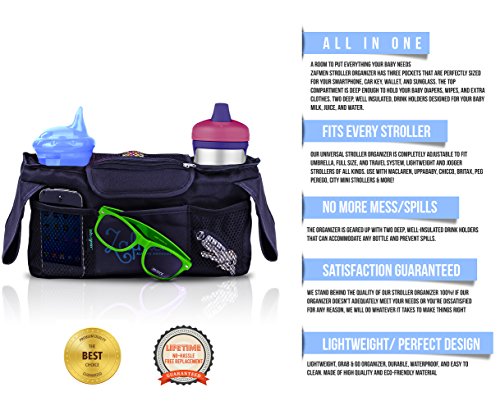 Zafmen great looking stroller organizer have an answer for you to make your life easy and stress-free. Please look below to the benefits of our product.