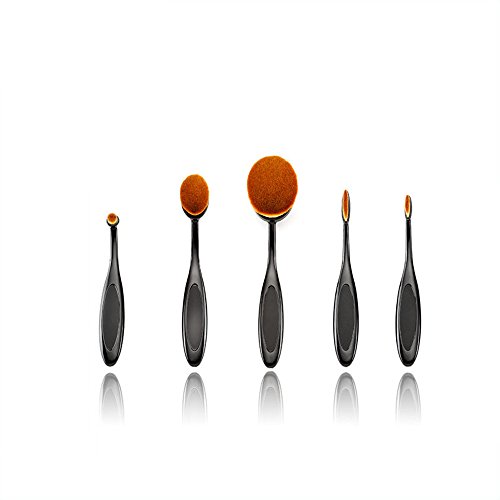 BeautyCoco 5 Pcs Oval Makeup Brush Set Professional Foundation Contour Concealer Blending Cosmetic Brushes with Gift Box (Black)