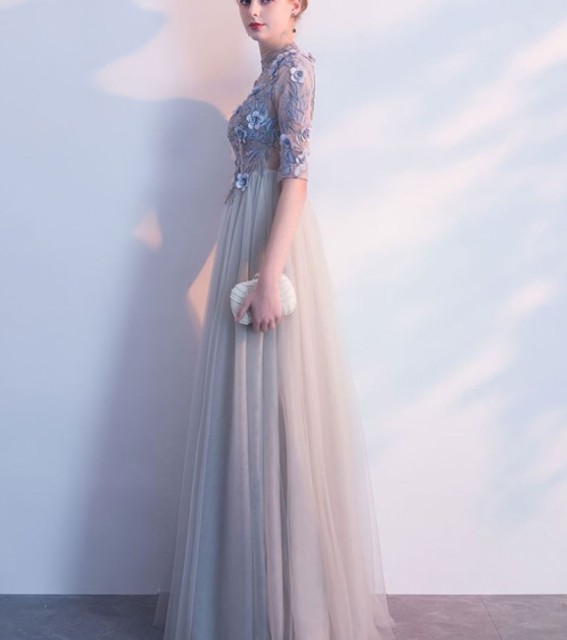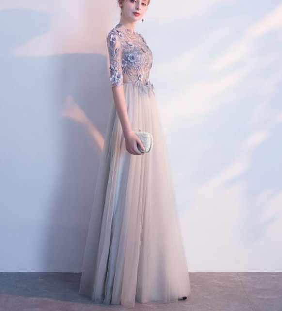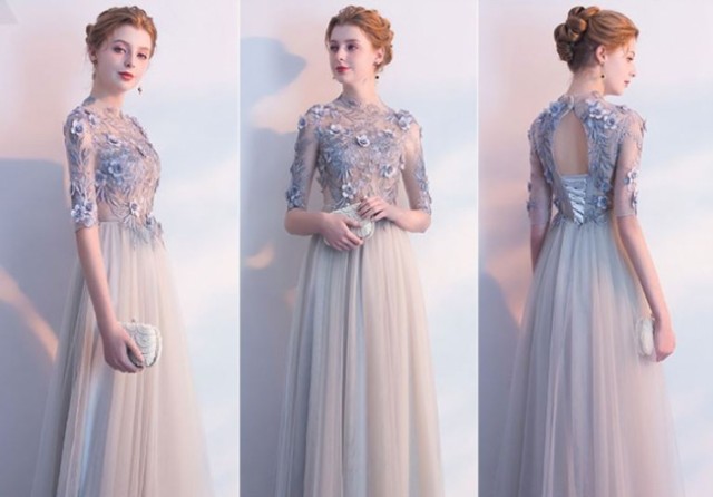 落ち着いたグレーで、結婚式や二次会、ディナーショー、お呼ばれに最適!