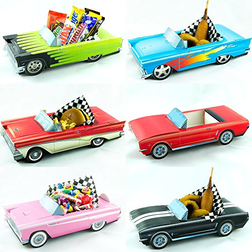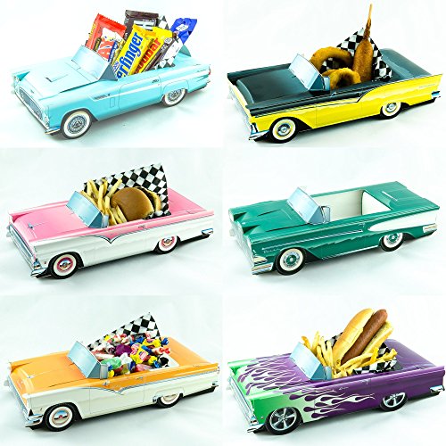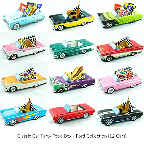 -. Feature : The ultimate Ford Collection in a 12 Car Set / Cardboard Replica of 50's & 60's Classic Cars Make Great Addition to Party or Event / Free Waxed Paper Food LIners Included in Every Set for Every Car (Food/Candy is not included) / Can be used as Food Container, Candy holder, Centerpiece, Party Favors / Easy to Assemble, They Come in One Piece with Easy Instructions on the back of each Car