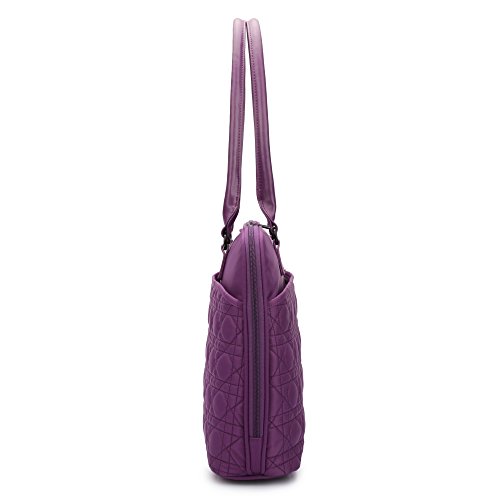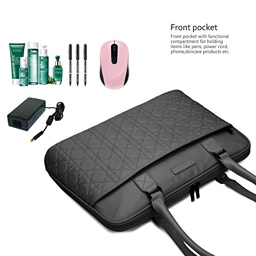 Studio : CoolBELL Publisher : CoolBELL Binding : Personal Computers Product Description CoolBell bases on the cutting-edge of fashion trends. Pursuing the best quality of laptop bag category and devoting to providing the best product and service to customers. We make every effort to achieve the best in every detail of design, color, material, sewing, sales and service. This stylish tote bag fits to laptop brand like Dell / HP / Toshiba / Lenovo / Acer / Macbook air/ macbook pro/ iPad / iPad pro/Surface 4 which up to 15.6 inches. Suits for office staff, students, business, teens, outdoor gens etc. Brand: CoolBell Description: Laptop Tote Bag Dimensions: 17.5 x 12.5 x 4.0 inches; Fits up to 15.6 inches laptop. Weight: 0.73 kg Color: Black Blue Purple Rose-Gold Material: Oxford Nylon cloth; 210D waterproof polyester lining Construction: Main compartment designed for keeping laptop and Tablets, books etc, one front pocket with zipper for keeping item like Perfume bottle, Lipstick, skincare,wallet, key, power bank, etc. A roomy back pocket for keep papers, documents etc Style: Simple Steady Water Resistance? Features: Study Business Leisure Travel ? ? Warm Tips:?Thanks for your purchasing in our store! Any problems about the bag which you buy from us, please let us know. CoolBell will try the best to solve it. Happy purchasing!! 0