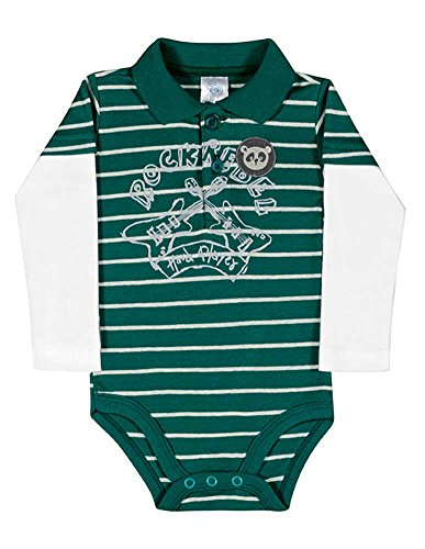 Feature : Baby boy polo style bodysuit, mock layered / Featuring a rock n roll graphic and horizontal stripes / Comes in forest green / Lightweight for comfort: Suitable for any occasion and season / Machine washable - Made in Brazil