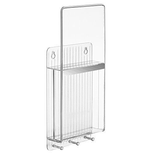 mDesign Mail, Letter Holder, Key Rack Organizer for Entryway, Kitchen - Wall Mount, Vertical, Clear/Chrome