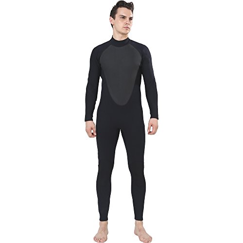Realon Men's 3mm Neoprene Wetsuit CR Diving Surfing Suit Snorkeling Suits Full Body Jumpsuit (black, 2X-Large)