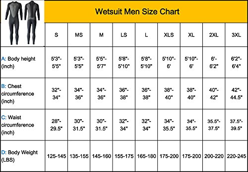 Realon Wetsuit Men Full 3mm Surfing Suit Diving Snorkeling Swimming Suit Jumpsuit (black, XLS)