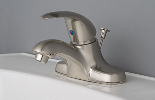 -. Title : Builders Shoppe 2041BN Single Handle Centerset Lavatory Faucet with Pop-Up Drain, Brushed Nickel Finish