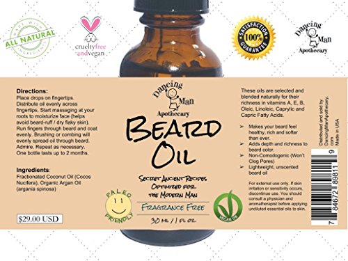 Beard Oil and Natural Conditioner for Best Results | Fragrance Free | Handcrafted Coconut and Organic Argan Oil From Morocco | Non-Comodogenic / Non Greasy Formula, No Clogged Pores