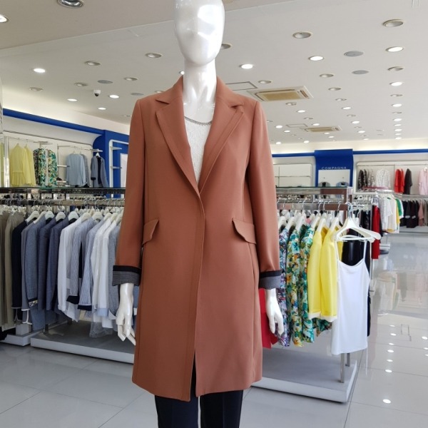 골테이프와 자수 디테일의 테일러드 중기장 자켓-카멜