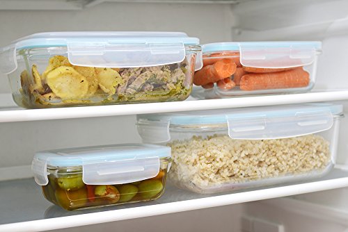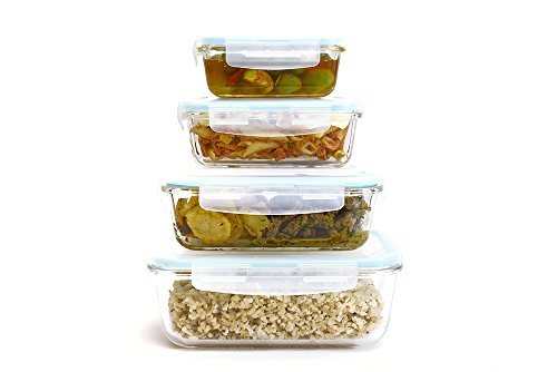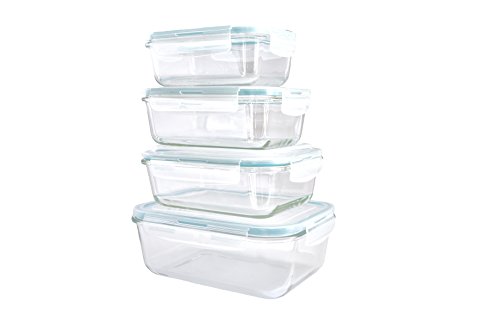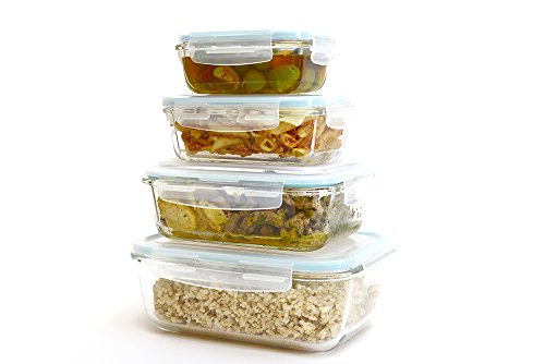 Glass Food Storage Container Set - 8 Piece Set (4 containers, 4 lids) with Easy Snap Lids by Western Ridge Products