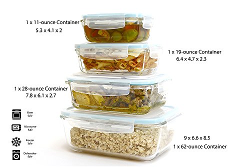 - VALUE & CONVENIENCE - Set Includes: 1 x 11-ounce Container, 1 x 19-ounce Container, 1 x 28-ounce Container, 1 x 62-ounce Container, each with its own Airtight Transparent Easy Snap Lid