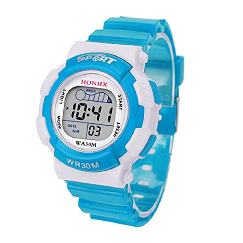 -. Title : HONHX Kids Student Jelly Silicone Band Sports Alarm Date Luminous Digital Wrist Watch -Light Blue