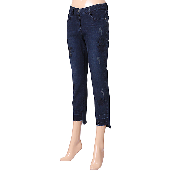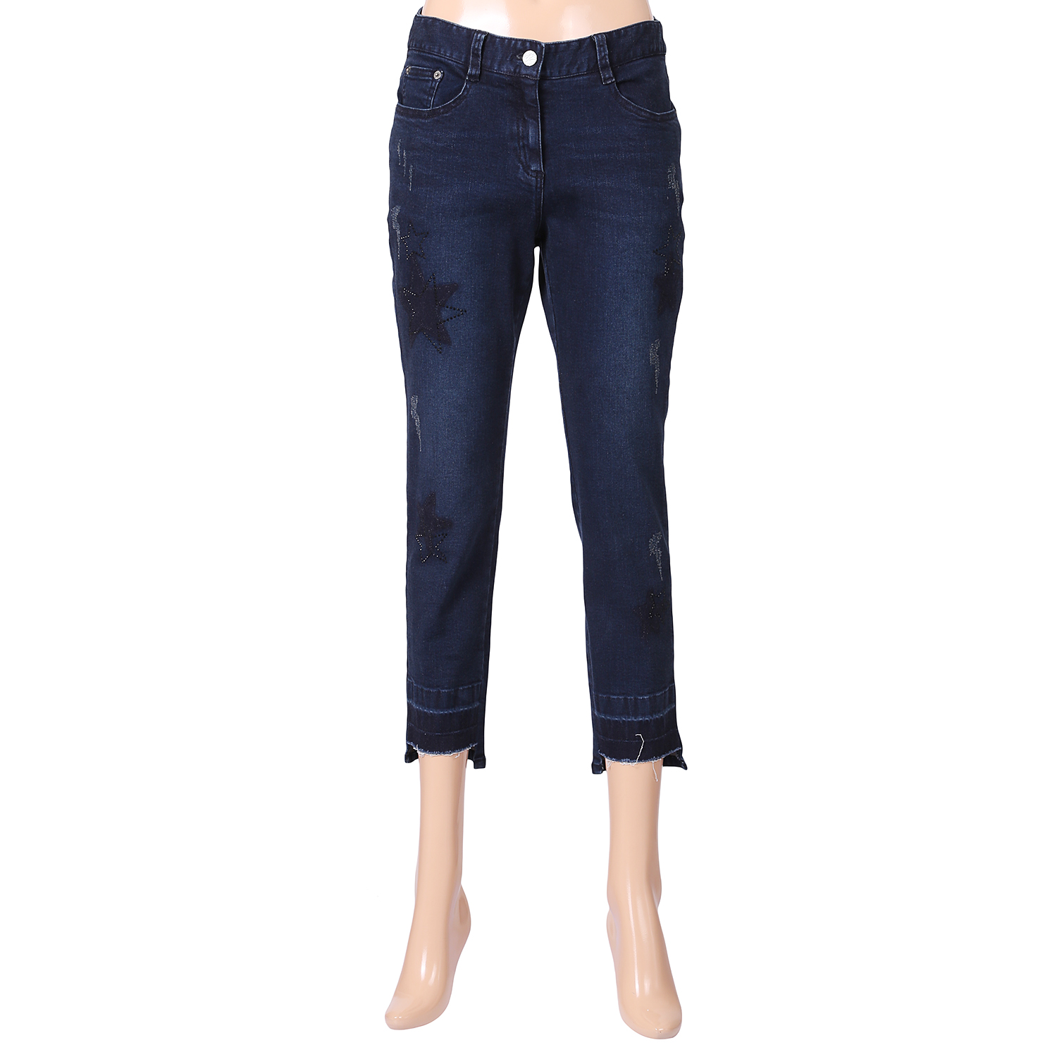 모판의 멋스러운 별모양의워싱과 비즈자익 총장의 앞뒤의 언벨런스기장으로 니티지 느낌의