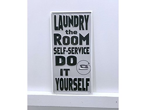 Sign-A-Tology 8"x16" Laundry Vintage Metal Sign "Laundry the Room self-service Do It Yourself" Grey