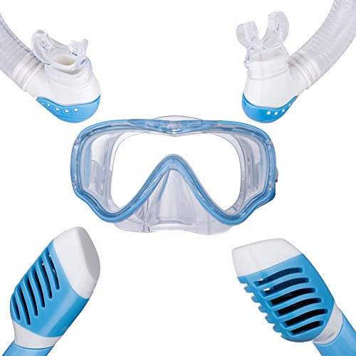 Kids Snorkeling Set Diving Goggles-Free Diving Snorkeling Mask-Anti Fog and Anti-leak Food Grade Silicone Mouthpiece-Dry Top System for Youth Junior Girls and Boys of 6-12 Years Old by FinalBase Brand