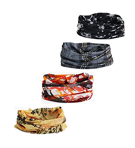 -. Feature : Be suitable for SP.R.Ing,Summer,Autumn,Winter / Material: polyeter / One Scarf for various function-Scarf,Headband,Balaclava,Cap,Scarf,wristguard,skirt and other use you can think of / Our thousands of customers have used our headbands for cold hunting trips, sunny fishing trips, rides on winding roads, and runs down snowy slopes / Package:4 pack in 4 different colors