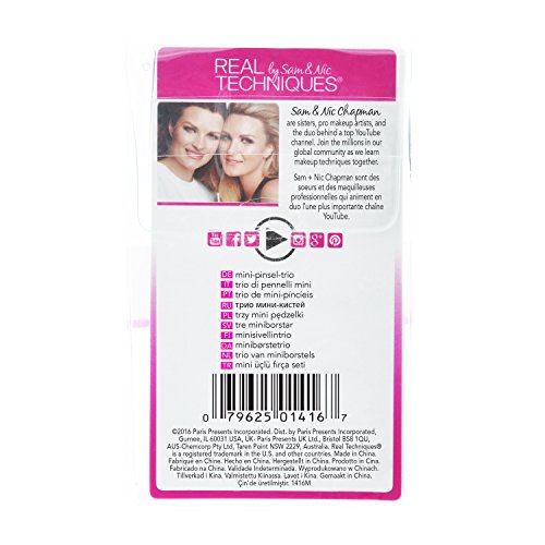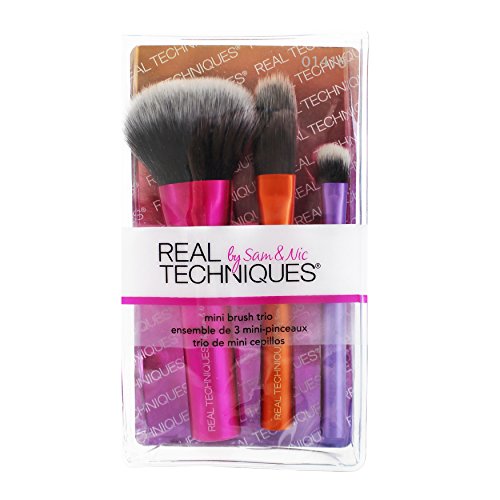 Real Techniques Cruelty Free Mini Brush Trio; With Ultra Plush Custom Cut Synthetic Bristles and Extended Aluminum Ferrules to Build Coverage