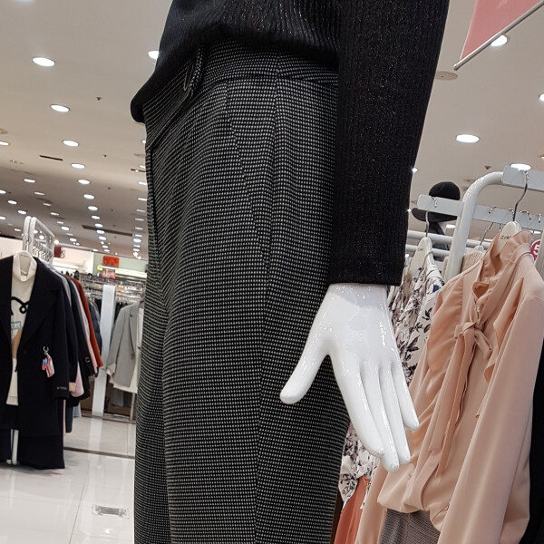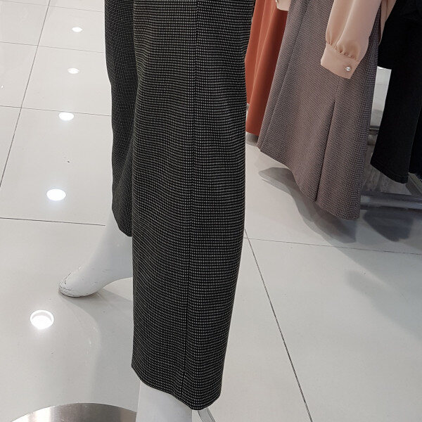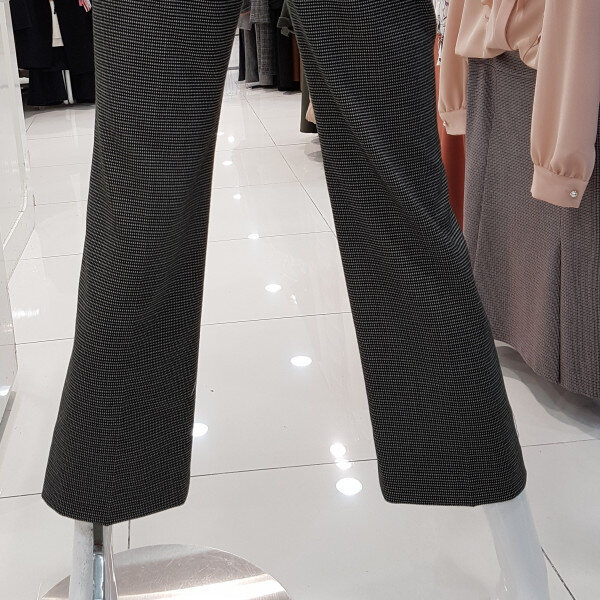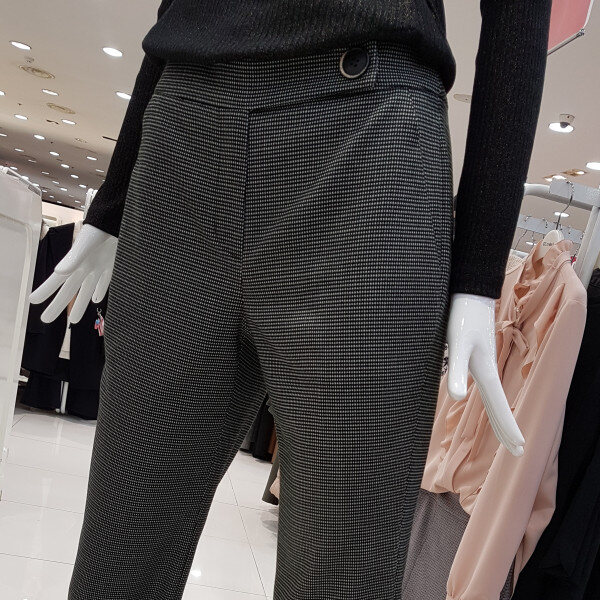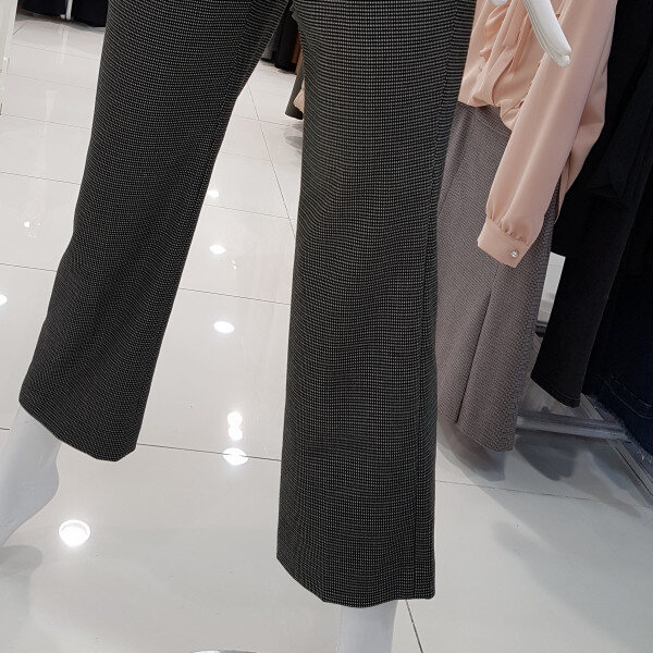 잔잔한 체크패턴에 핏이 이쁜아이네요날씬핏에 착용시 살짝부츠컷 느낌은세미정장스탈에 넘넘 세련해요길게뻗은 허리고리선에 편하구용어디든 편하게 착용 좋으실듯합니당