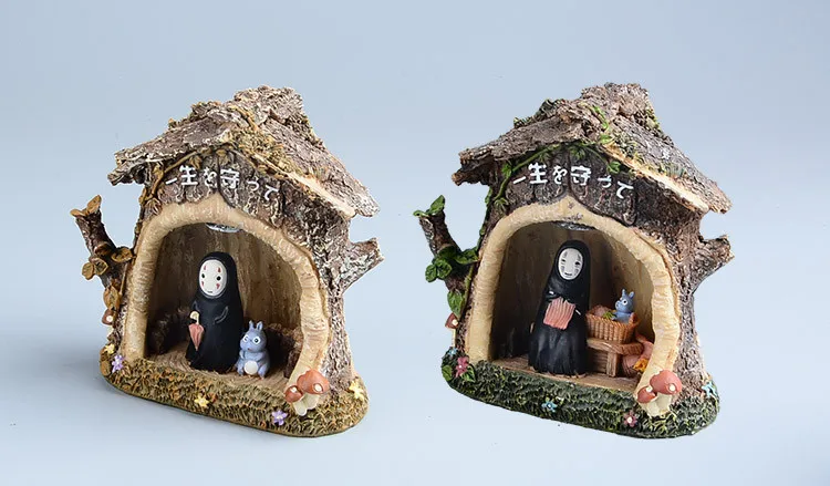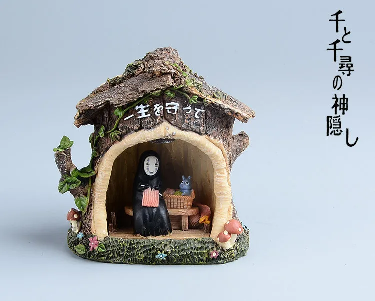 Hayao Miyazaki Spirited Away Kaonashi Resin Figurine Kids Toys Japan Anime Studio Ghibli No Face LED Light Model Action Figure