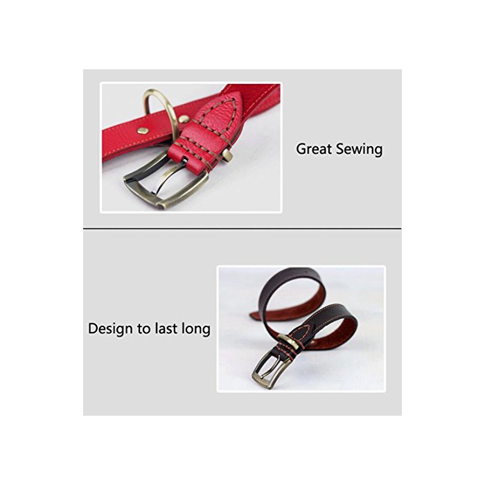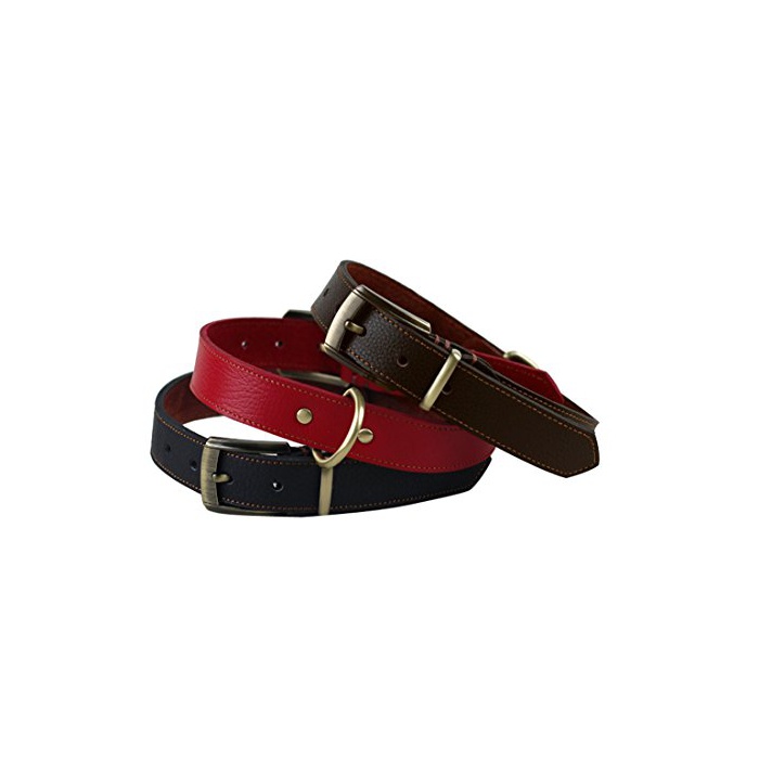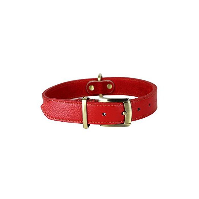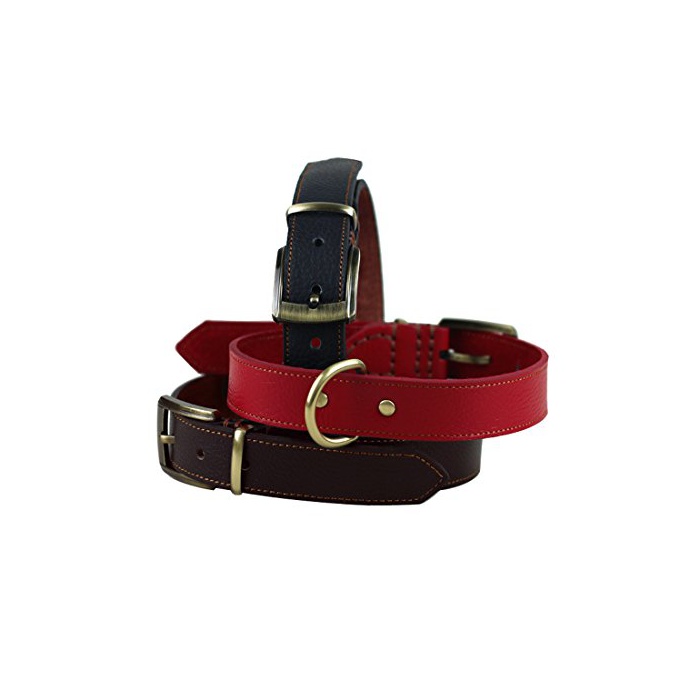 Rantow 소프트 레더 조절 가능한견의 목걸이,넥 사이즈43~53 cm,중형/대형견 용3 cm와이드 스트 롱 레더 컬러 (빨강)