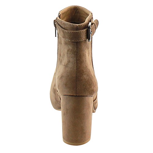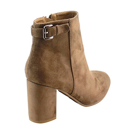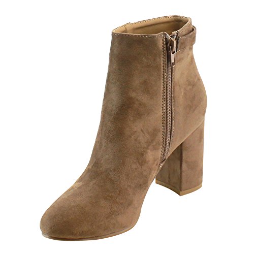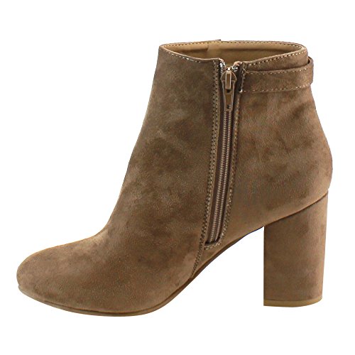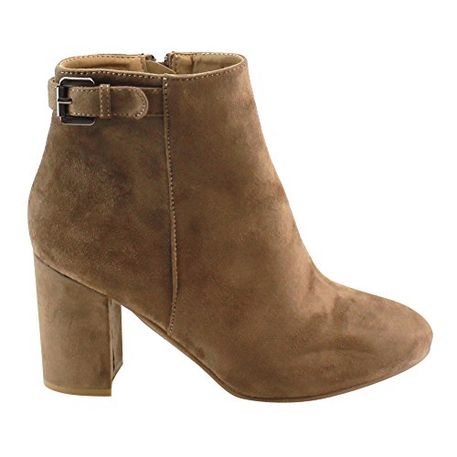 Product DescriptionMake your look pop with this chic ankle boot. Featuring faux suede upper, side buckle accent, wrapped block heel and side zipper closure for easy on and off.0