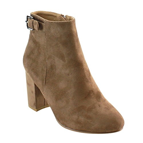 NATURE BREEZE FD92 Women's Buckle Strap Chunky Block Heel Ankle Bootie