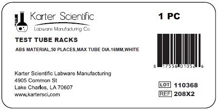 Karter Scientific 208X2 Plastic Test Tube Rack for 16mm Tubes, ABS material, White