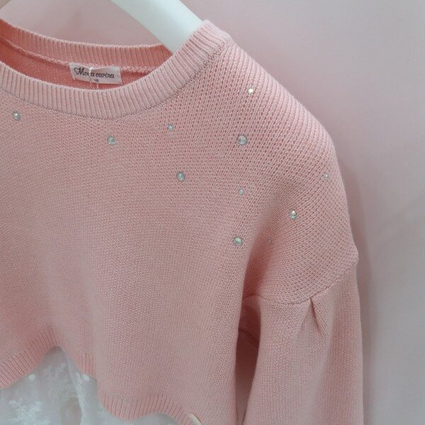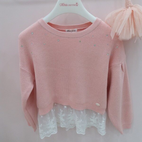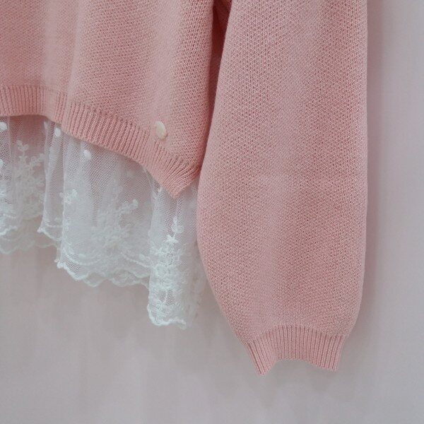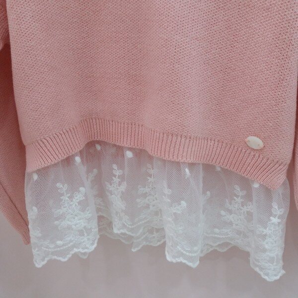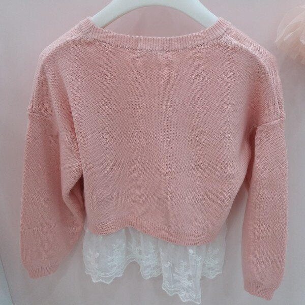 러블리한 핑크와 레이스가 만나 사랑스러움이 배가 되는 니트티셔츠입니다.드합숄더로 편안한 느낌을 주고 양어깨에 오팟ㄴ핫피스의 사용으로 은은핫 화려함이 표현됩니다~