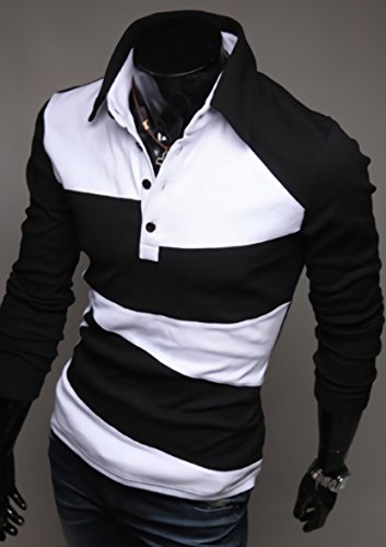 글로스 라인 긴 소매 폴로 셔츠 버튼 다운 슬림 스포츠 웨어 바이 컬러 스타일리시