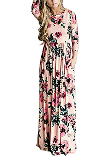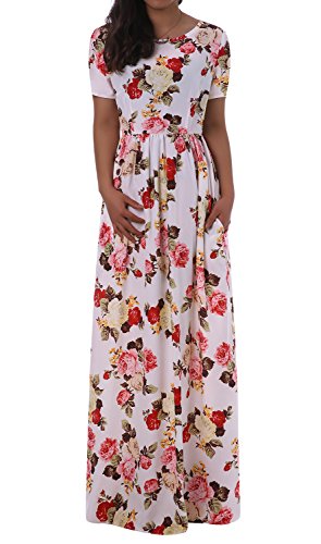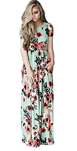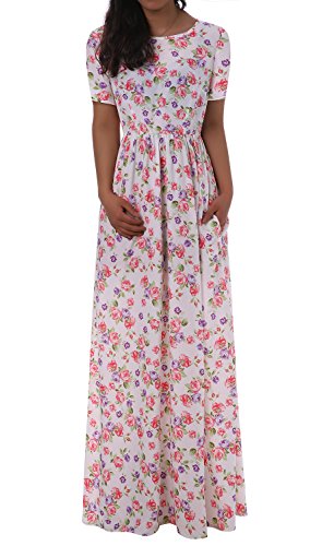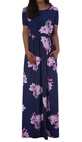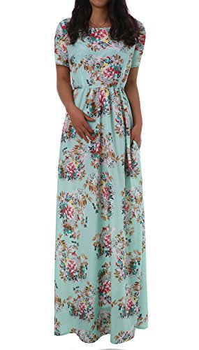 Sibylla Women's Floral Printing Dress Round Neck Boho Plus Size Long Maxi Dress for Beach Party Package Includes: 1 x Sibylla floral dress