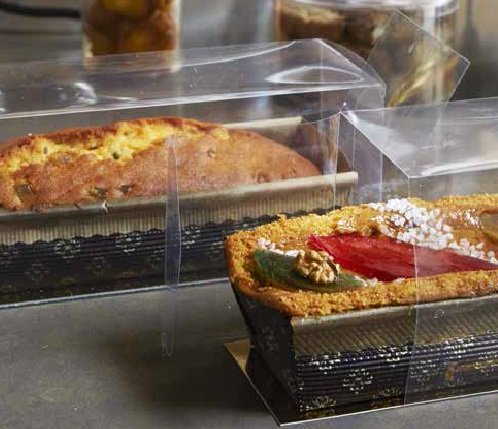 Clear Large Cake Loaf Pan Gift Box with Gold Cake Board - 8.5'' x 3.5'' x 4.75''- Pack of 6