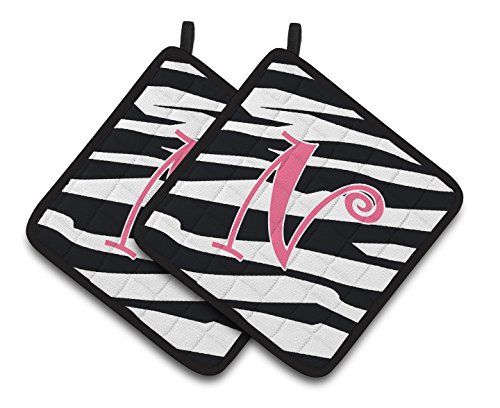 Caroline's Treasures Monogram Initial N Zebra Stripe & Pink Pair of Pot Holders CJ1037-NPTHD, 7.5HX7.5W, Multicolor