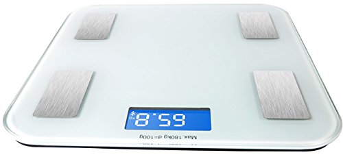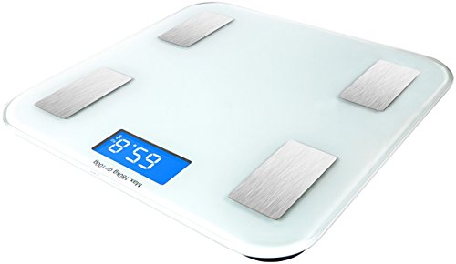 SMART SCALE - Stepping on to get 8 body index measurements with no on/off button. LCD display shows clear weight readings anytime with blue backlight.