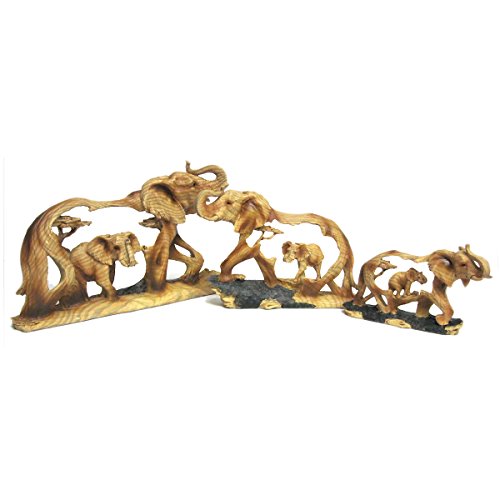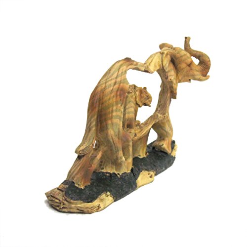 Elephant and Baby Walking in the Wild Faux Wood Figurine