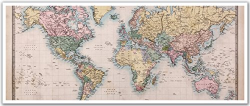 JP London PAN5061 uStrip Vintage Cropped Map of the World High Resolution Peel Stick Removable Wallpaper Sticker Mural, 48" x 19.75"
