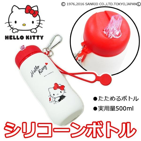 キティちゃんのイラストが可愛いシリコーンボトル。飲み終わった後は、丸めて付属のストラップで留めればとってもコンパクトに!カラビナ付きですので、カバンなどに付ける事もできます。 |