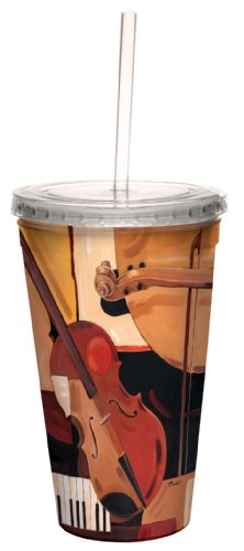 Tree-Free Greetings cc33400 Cool Abstract Violin by Paul Brent Artful Traveler Double-Walled Cool Cup with Reusable Straw, 16-Ounce, Multicolored