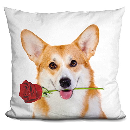 LiLiPi Welsh Corgi Rose Square Decorative Accent Throw Pillow