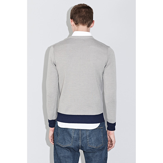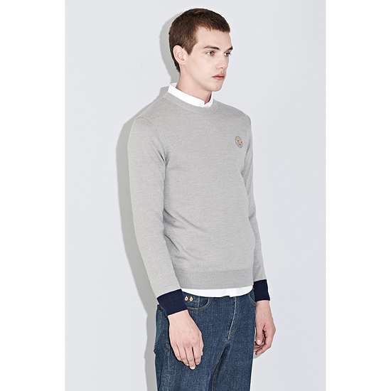 - 심플한 스타일에 부분적인 배색 컬러로 트렌디한 컬러감의 남성 니트.