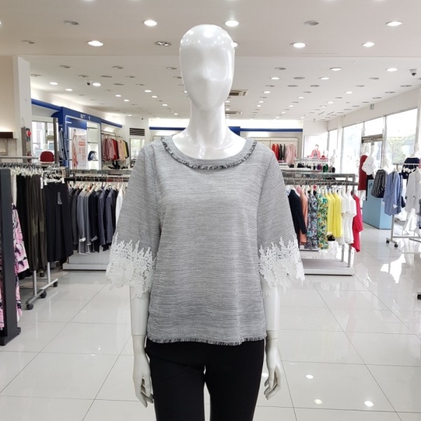 레이스밑단 디테일의 짧은기장 블라우스-JA7U5-WRB380-430그레이