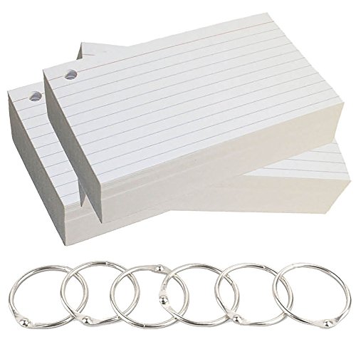 Debra Dale Designs - Ruled Hole Punched Ringed Index Cards with 6 Metal Binder Rings - 3 x 5 Inches - White - 300 Cards - 3 Packages of 100 - Premium Extra Heavy 140# Index Card Stock