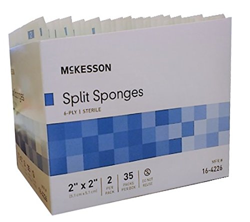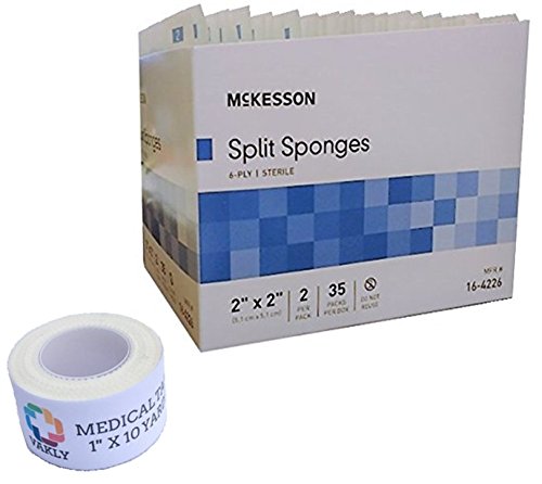 Sterile 2''x2'' 6 Ply Split Drain Sponge 35 Packs Of 2 + 1 Roll Of Vakly Medical Tape (1)