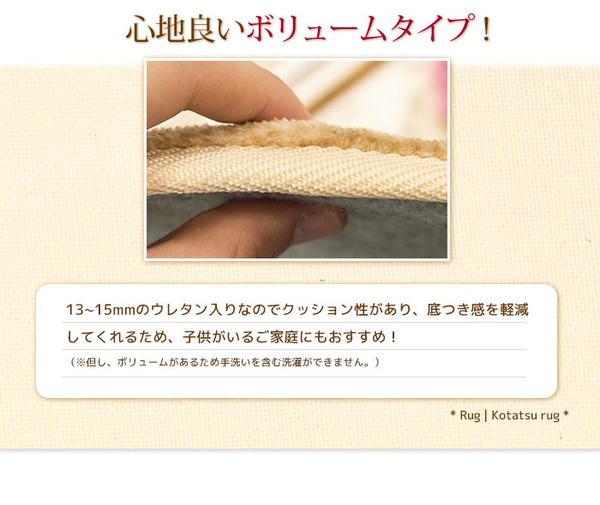 ●クッション性能ある13-15mmウレタン入りラグ!