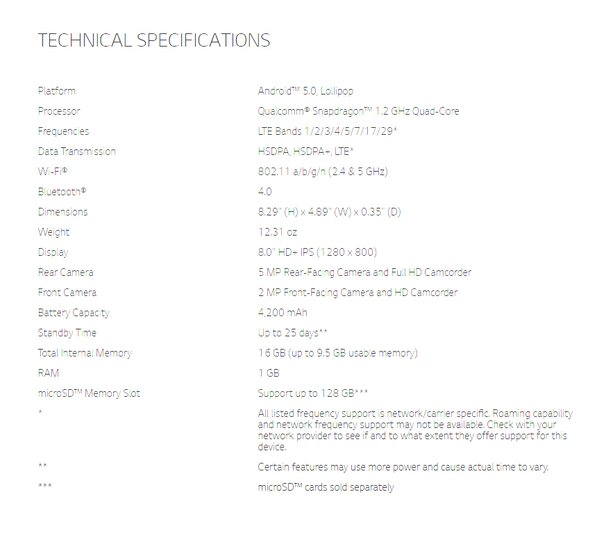 LG G Pad II F V495 8" HD 16GB 4G LTE Wi-Fi, Android GSM Unlocked Tablet N