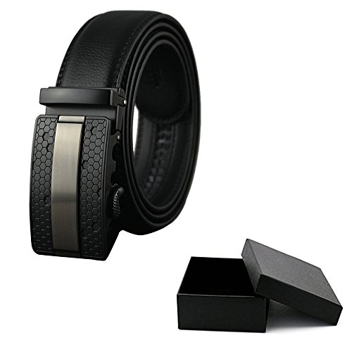-. Title : Blivener Men's Leather Belt with Automatic Ratchet Solid Buckle 35mm Wide