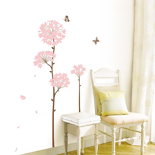 1 X Nursery Easy Apply Wall Sticker Decorations - Long Stem Pink Flower Butterfly Petals