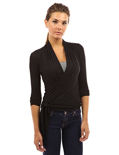 PattyBoutik Sexy Convertible Long Sleeve Casual Wrap Blouse Top. Wrapping and tiding at side or front to create different styles. The tank top underneath is not included. Model in pictures is 5 feet 8 inches (173cm) tall.